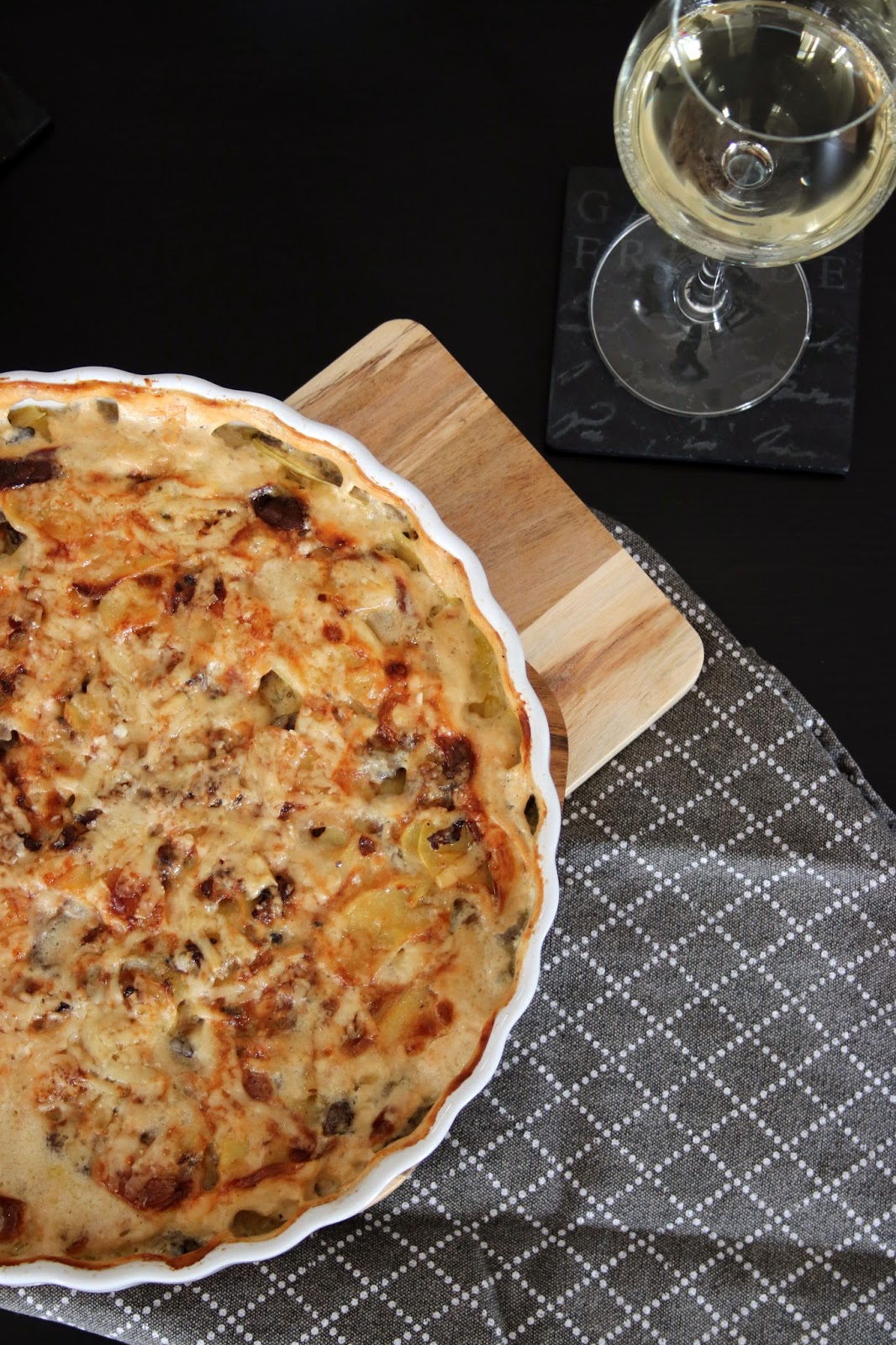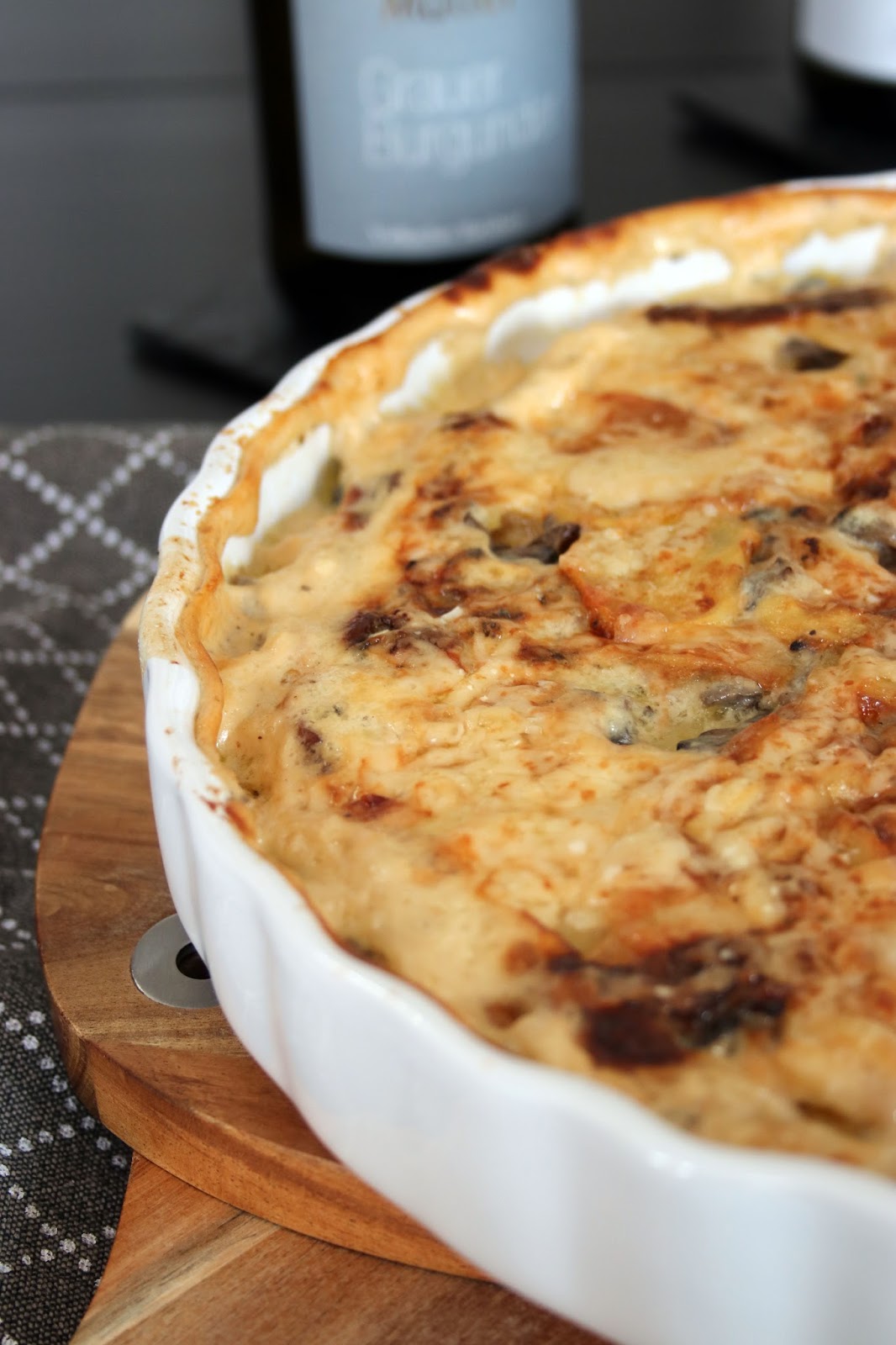 Passend zu kraftvollem Weißwein – Kartoffelgratin mit Champignons