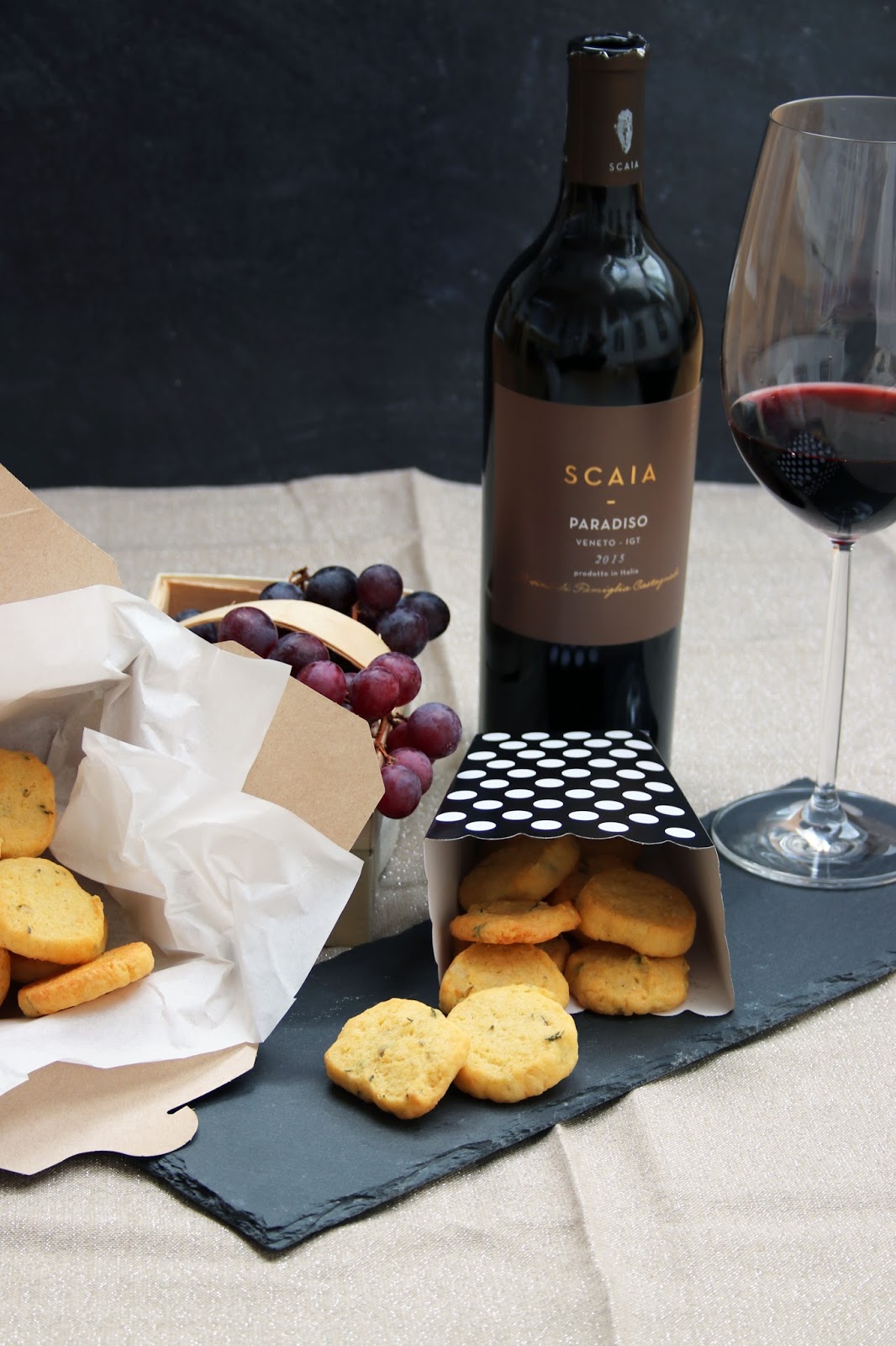 Der Weintipp hier: Thymian verbindet sich wohl am besten mit einem südländischen Rotwein. Ich habe mir hier einen Wein aus Italien ausgesucht, eine Entdeckung aus dem Gardasee-Urlaub, ein wahnsinnig geschmeidiger schöner Rotwein: Paradiso vom Weingut Scaia. Alleine das Etikett ist herrlich, denn auf der Rückseite steht – grob übersetzt – geschrieben: Wer gut trinkt, schläft gut. Wer gut schläft, sündigt nicht. Wer nicht sündigt, kommt ins Paradies. Ist das nicht schön?! Und wenn sowas dann auch noch so lecker schmeckt, fühlt man sich doch schon fast wie im Paradies. Und die Kekse passen perfekt dazu.
