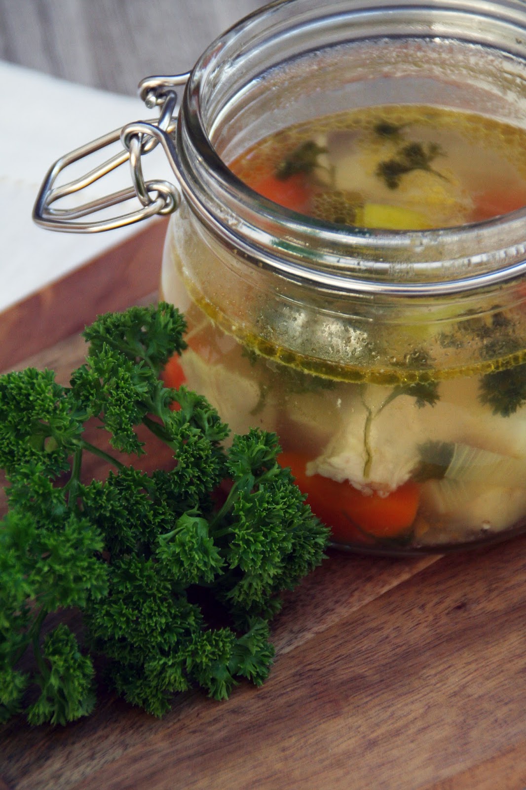 Wenn ihr doch ein ganzes Suppenhuhn verarbeiten möchtet, verlängert sich die Kochzeit entsprechend und ihr solltet auch etwas mehr Wasser und Gemüse verwenden.