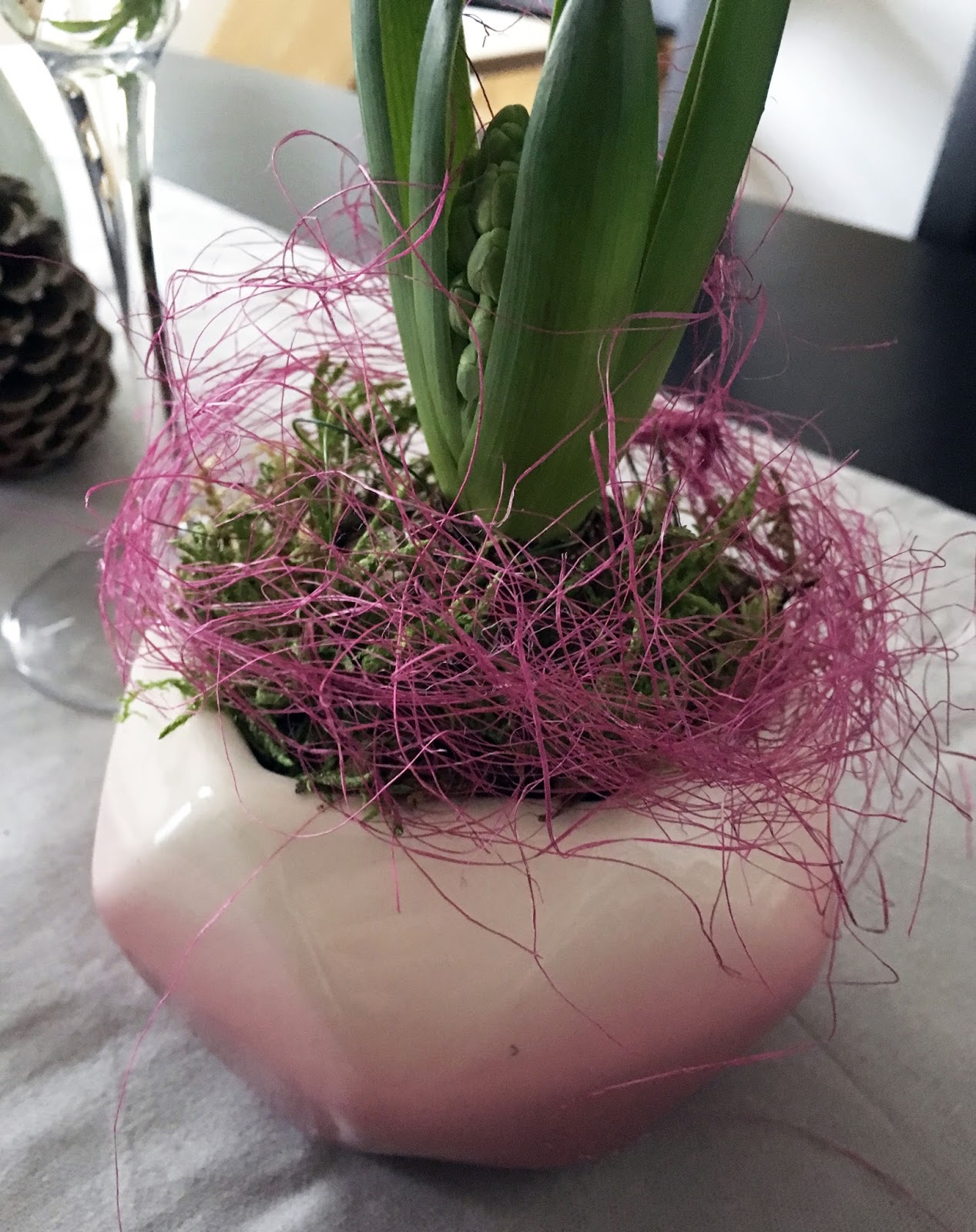 Ich habe die Schalen noch mit etwas Moos und Sisalhaar ausgefüllt. Macht sich sehr hübsch auf meinem Tisch.