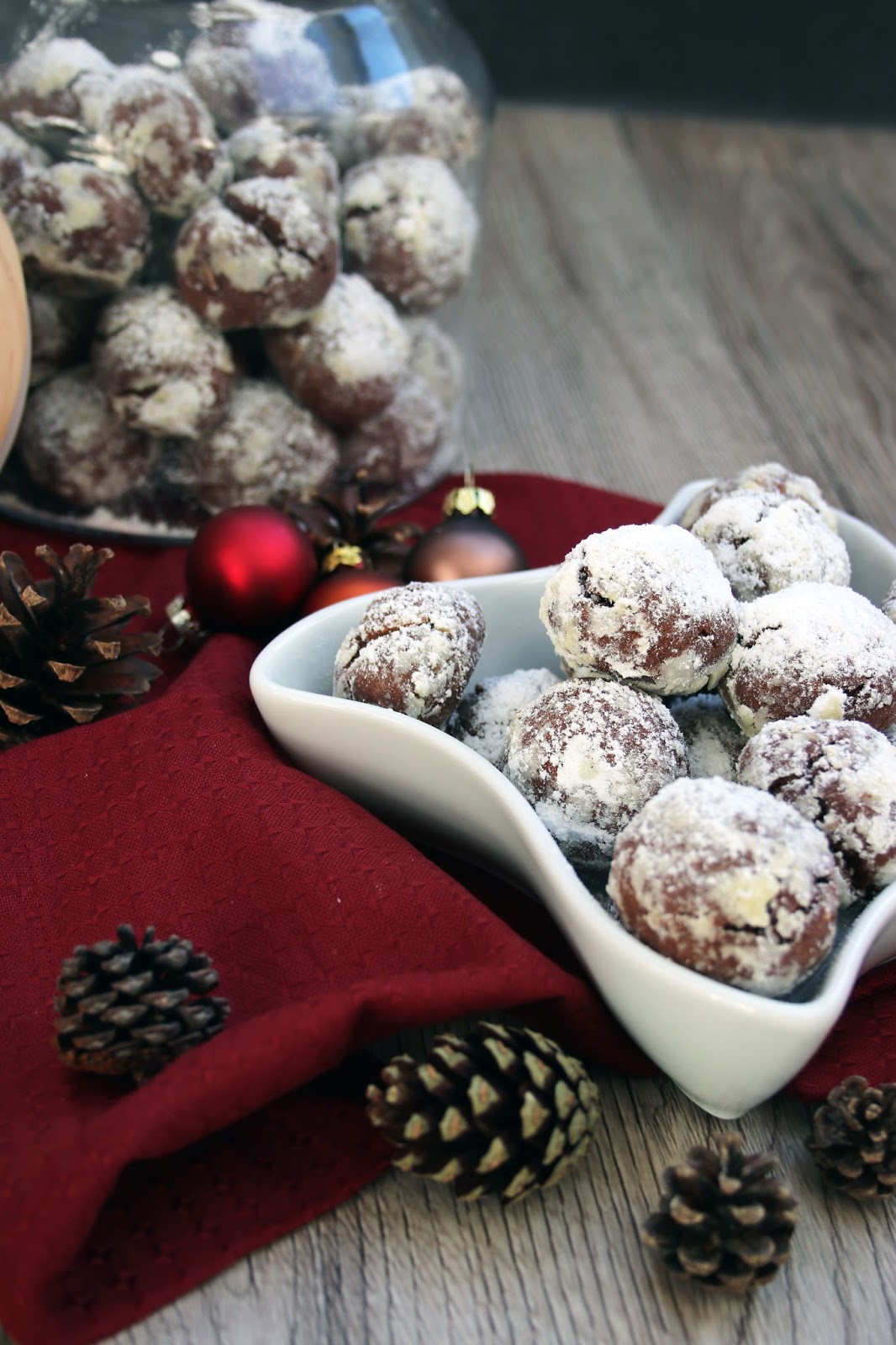 Dennoch muss man ja auch immer mal was Neues ausprobieren. Und schon letztes Jahr habe ich die tollen Fotos von wunderhübschen Schoko-Schneebälle bewundert. Und dieses Jahr musste ich sie einfach mal probieren. Ich habe dazu kein Standard-Rezept verwendet, sondern hab mir aus diversen Rezepten meine eigene Kombi überlegt.